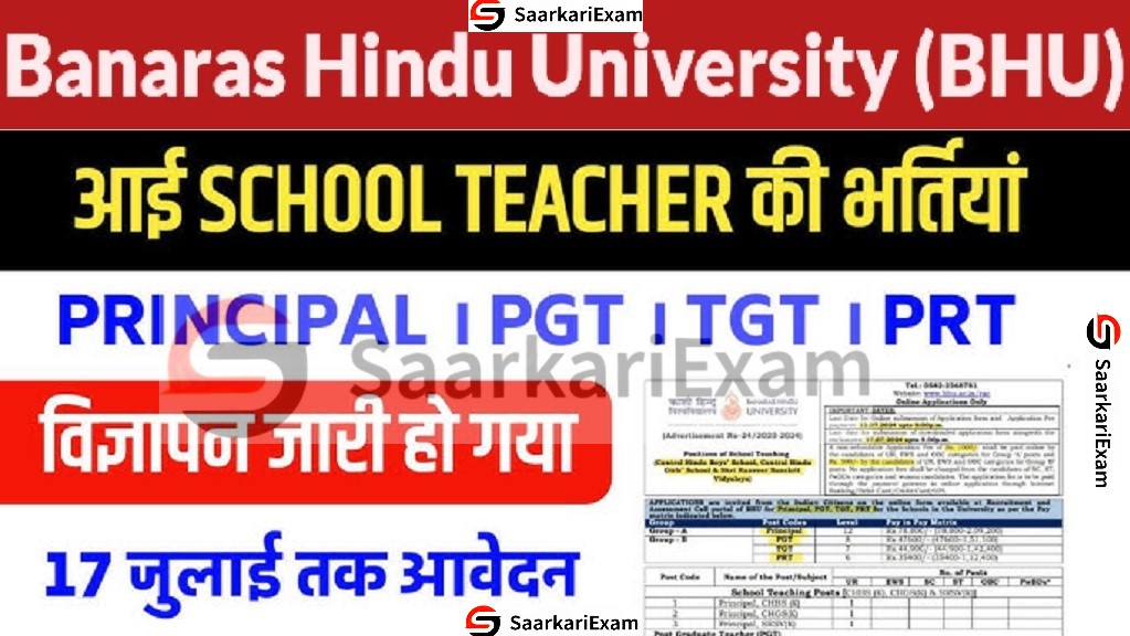 BHU TGT, PGT, PRT, Principal in School Teaching Recruitment 2024